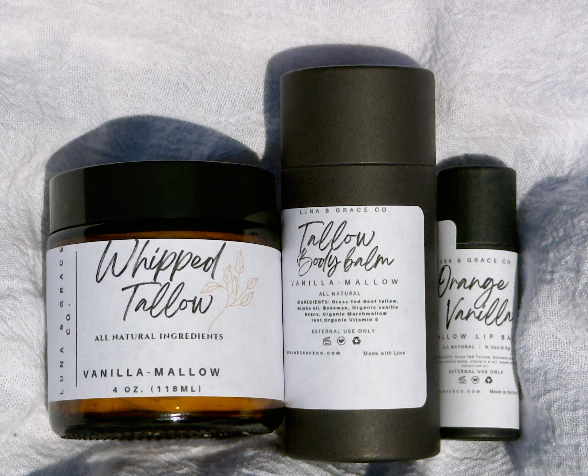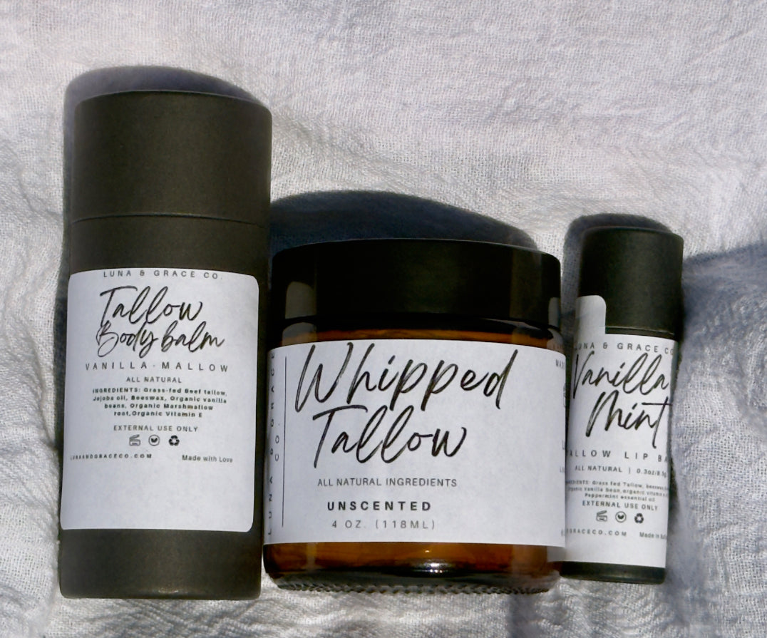 - Fluffy Whipped Tallow (4 oz) – Our best-selling whipped moisturizer (choose Vanilla or Unscented).